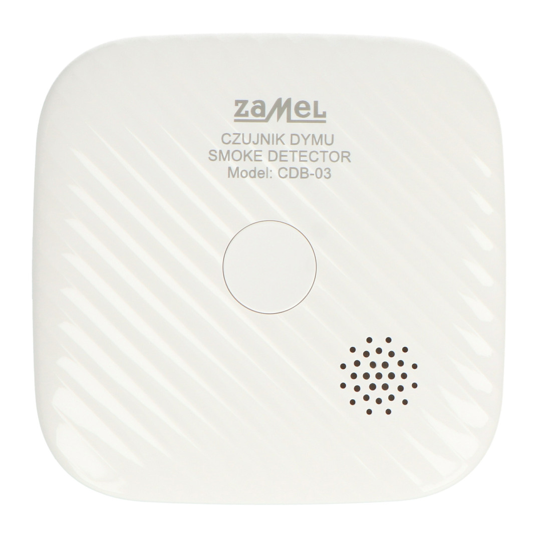 Czujnik dymu CDB-03 firmy Zamel zapewnia szybkie wykrywanie zagrożeń pożarowych w mieszkaniach, domach i obiektach użytkowych. Dzięki zastosowaniu niezawodnego sensora fotoelektrycznego, czujnik skutecznie reaguje na obecność dymu, emitując jednocześnie alarm akustyczny i migającą sygnalizację świetlną. Wbudowany moduł WiFi oraz obsługa aplikacji Tuya umożliwiają pełen dostęp do urządzenia z każdego miejsca na świecie. Kompaktowe rozmiary, nowoczesny wygląd i zasilanie bateryjne sprawiają, że CDB-03 jest prosty w montażu i gotowy do działania zaraz po instalacji.