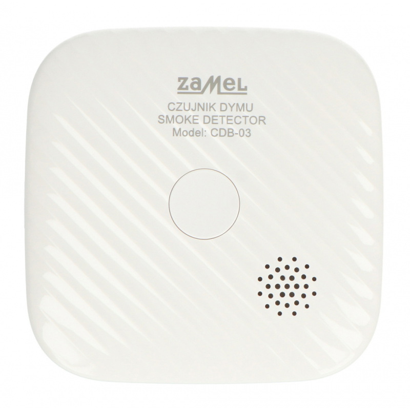 Czujnik dymu CDB-03 firmy Zamel zapewnia szybkie wykrywanie zagrożeń pożarowych w mieszkaniach, domach i obiektach użytkowych. Dzięki zastosowaniu niezawodnego sensora fotoelektrycznego, czujnik skutecznie reaguje na obecność dymu, emitując jednocześnie alarm akustyczny i migającą sygnalizację świetlną. Wbudowany moduł WiFi oraz obsługa aplikacji Tuya umożliwiają pełen dostęp do urządzenia z każdego miejsca na świecie. Kompaktowe rozmiary, nowoczesny wygląd i zasilanie bateryjne sprawiają, że CDB-03 jest prosty w montażu i gotowy do działania zaraz po instalacji.