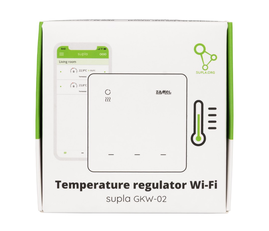 GKW-02 od Zamel Supla to nowoczesny regulator temperatury WiFi, który pozwala na wygodne sterowanie urządzeniami grzewczymi, takimi jak listwy grzewcze, zawory czy maty grzewcze po zastosowaniu dodatkowych elementów. Dzięki funkcji integracji z aplikacją Supla, możesz łatwo ustawić pożądane temperatury, tworzyć harmonogramy ogrzewania i monitorować historię temperatur w prosty sposób. Sterownik wyposażony jest w trzy dotykowe pola, które mogą pełnić rolę wyzwalaczy do innych akcji w systemie Smart Home. Dzięki swojej estetycznej obudowie, urządzenie doskonale wpasowuje się w różnorodne wnętrza.