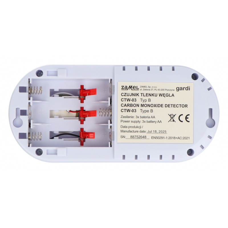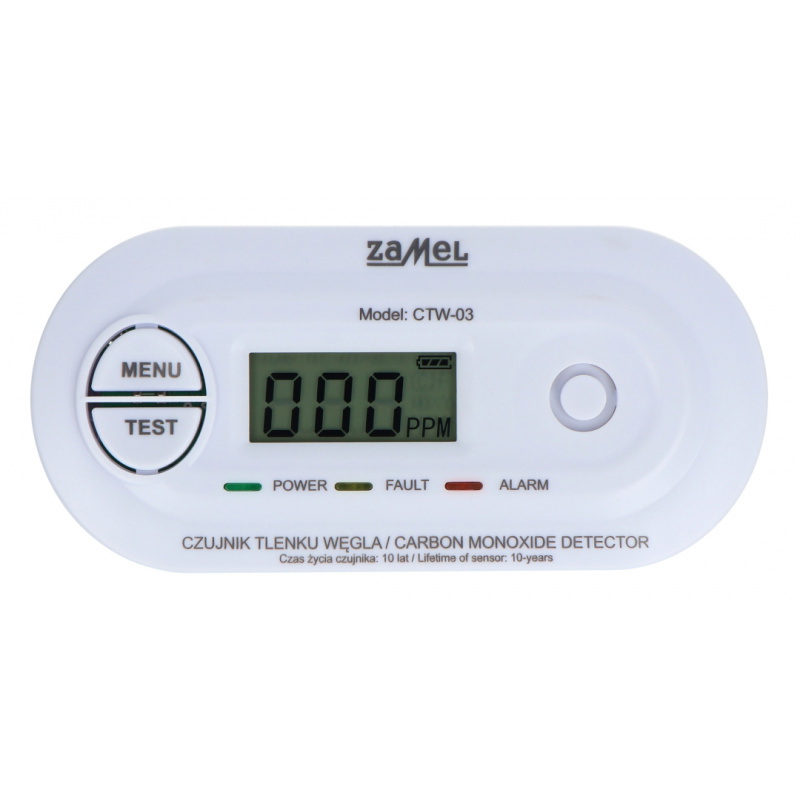 Opis produktu: Czujnik tlenku węgla bateryjny - Zamel Gardi CTW-03