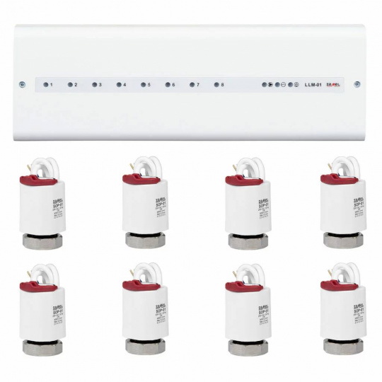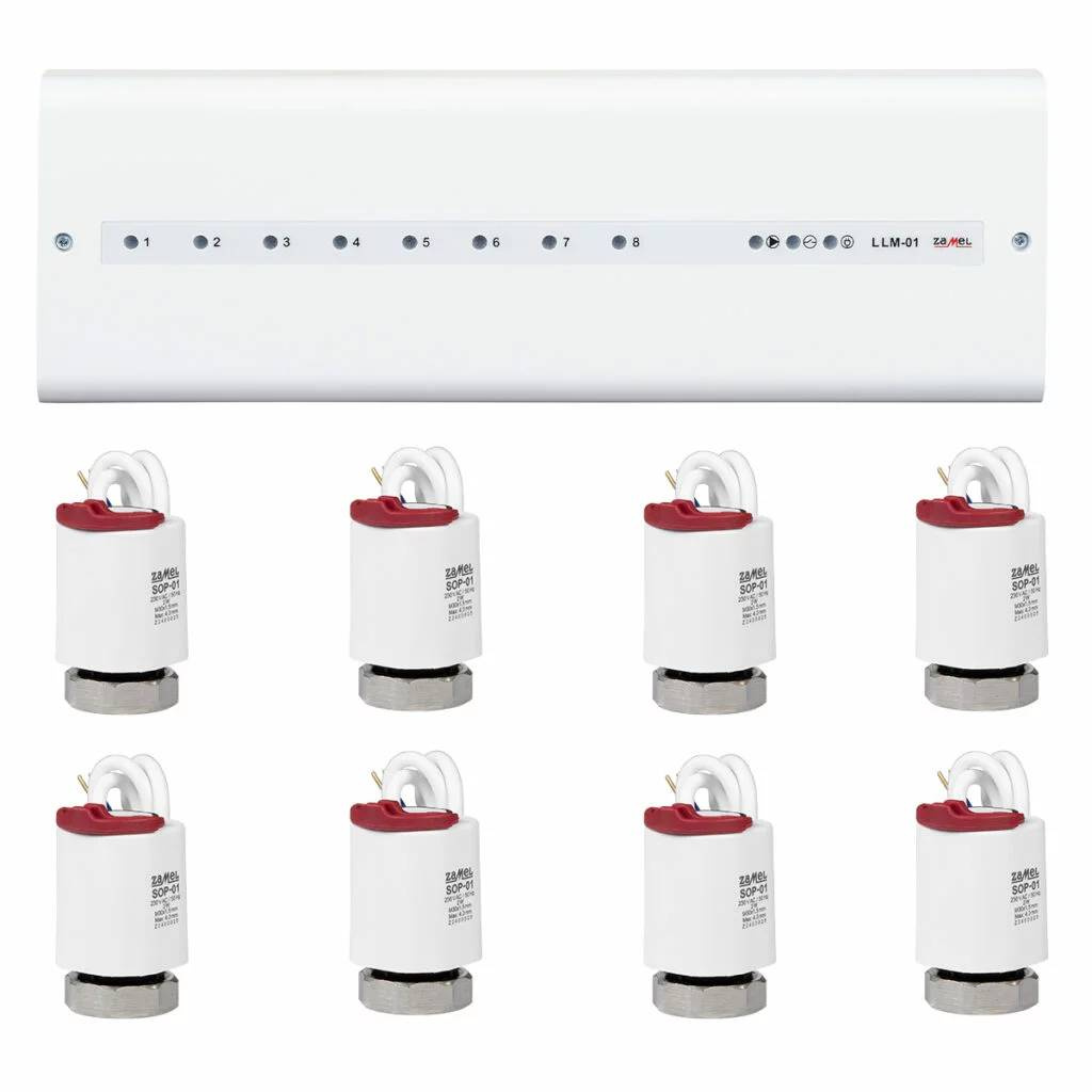 Opis produktu: Zamel Supla ZSP-01 - zestaw do sterowania wodnym ogrzewaniem podłogowym - listwa sterująca LLM-01 + siłowniki SOP-01- 230 V
