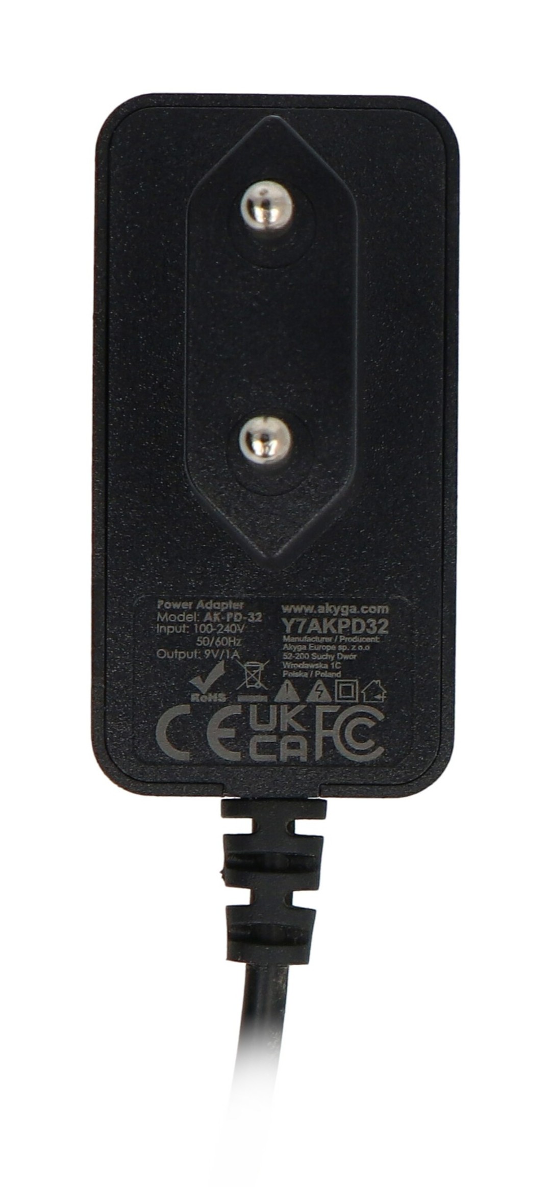 - 1x Zasilacz Akyga AK-PD-32 9 V / 1 A