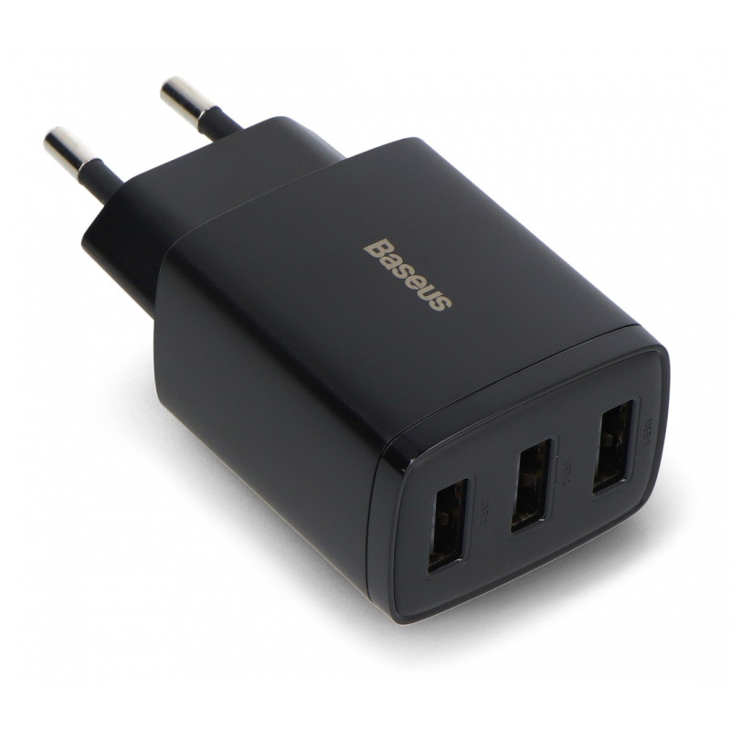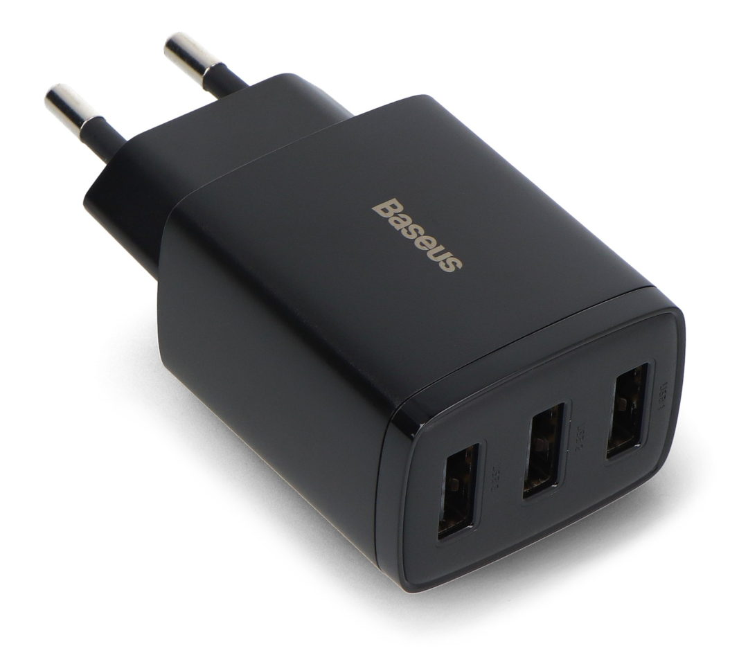 Opis produktu: Zasilacz Baseus Compact Quick Charger 3 x USB-A - 5 V / 3,4 A 17 W - czarny