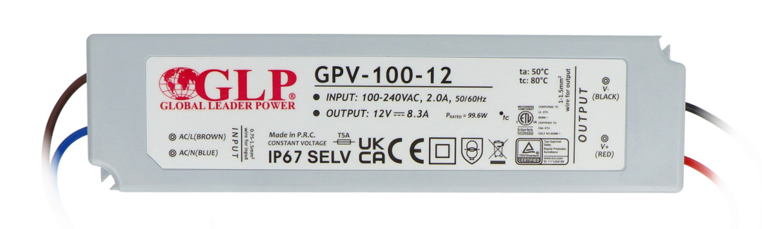 Wodoodporny zasilacz do taśm i pasków LED GPV-100-12 - 12V / 8,3A / 100W - szczegółowe informacje