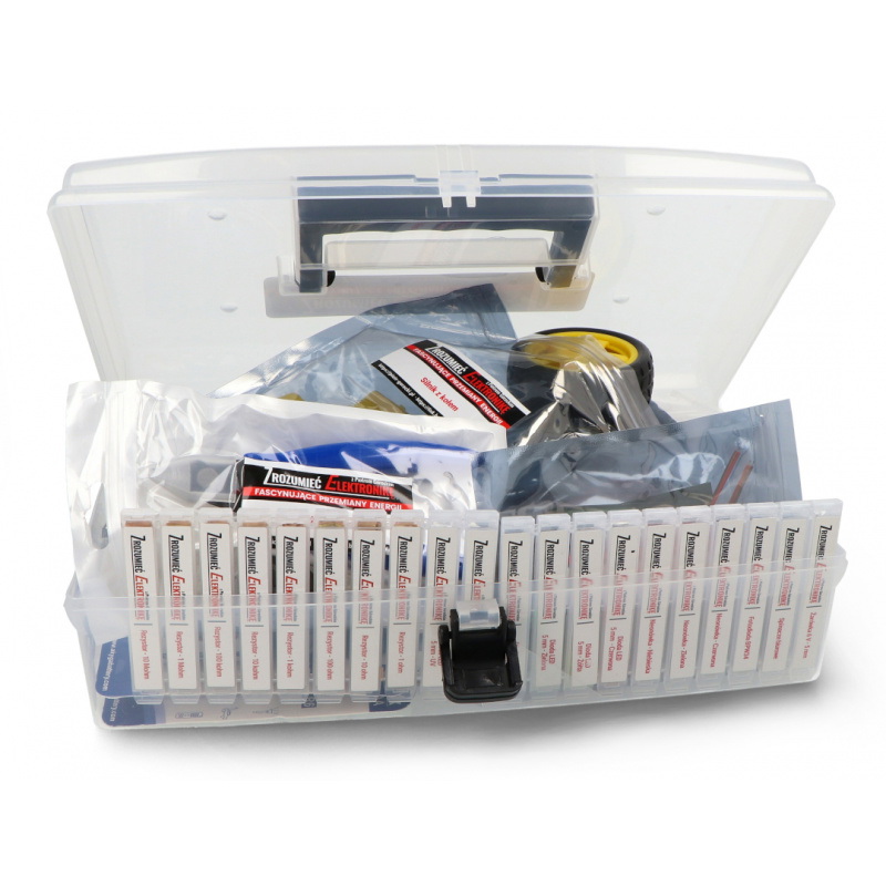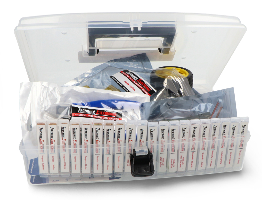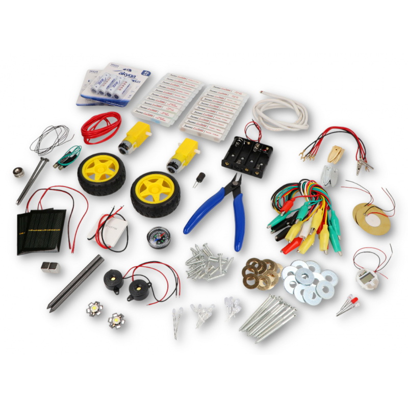 - Kompletny zestaw dydaktyczny do nauki podstaw elektroniki: zawiera elementy do eksperymentów z sześcioma rodzajami przemiany energii