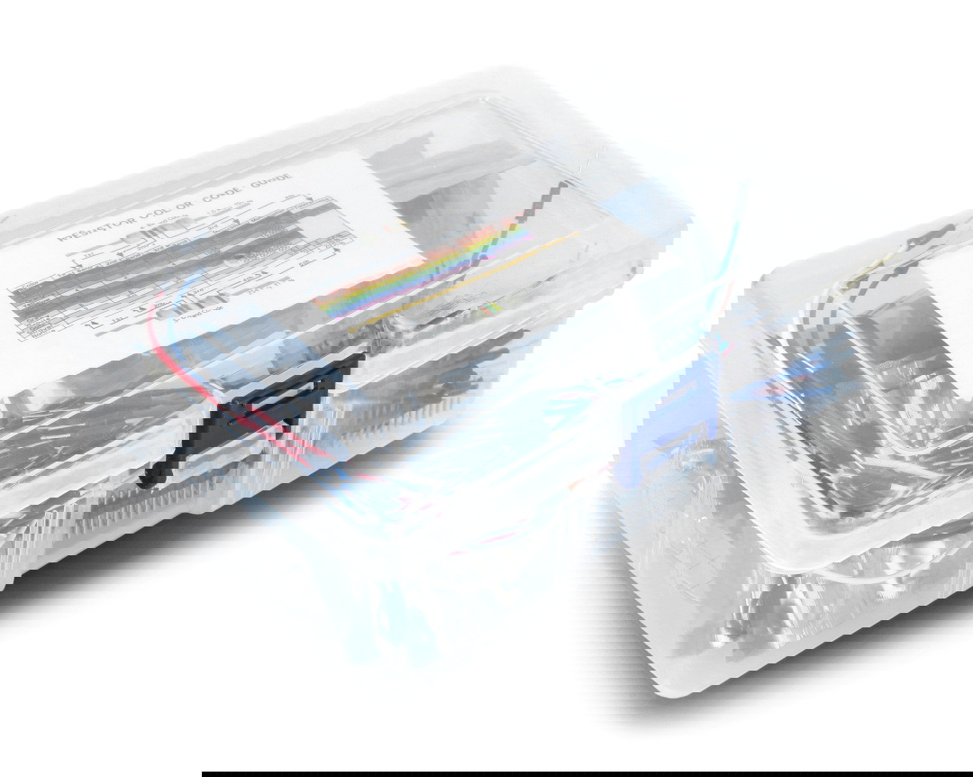 Zestaw elementów prototypowych, które można wykorzystać do tworzenia układów elektronicznych wraz z Arduino lub innymi mikrokontrolerami. W komplecie znajdują się m.in.: płytka stykowa, przewody, przyciski Tact Switch, diody LED, kondensatory, rezystory, a także tabelka ułatwiająca rozpoznanie rezystorów i wiele więcej. Całość zamknięta jest w małym pojemniku.
