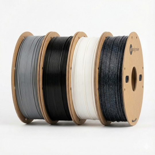 Poznaj idealnie skomponowany pakiet filamentów, który zaspokoi większość Twoich potrzeb w druku 3D. Zestaw zawiera cztery szpule nawinięte na przyjazne dla środowiska, tekturowe rolki.