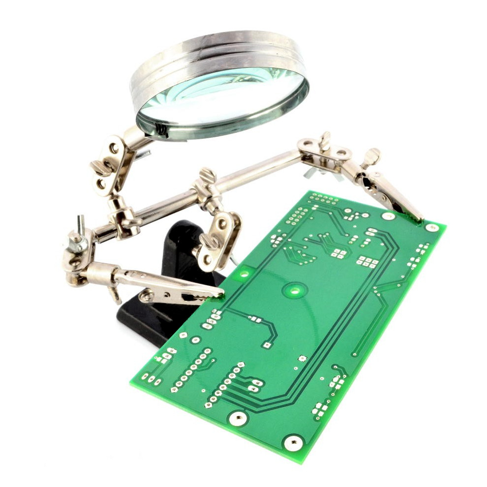 Uchwyt montażowy z lupą powiększającą oraz dwoma chwytakami ułatwiający lutowanie. |