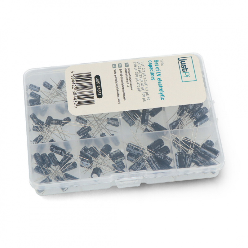 Opis produktu: Zestaw kondensatorów elektrolitycznych LV - justPi - 120 szt.