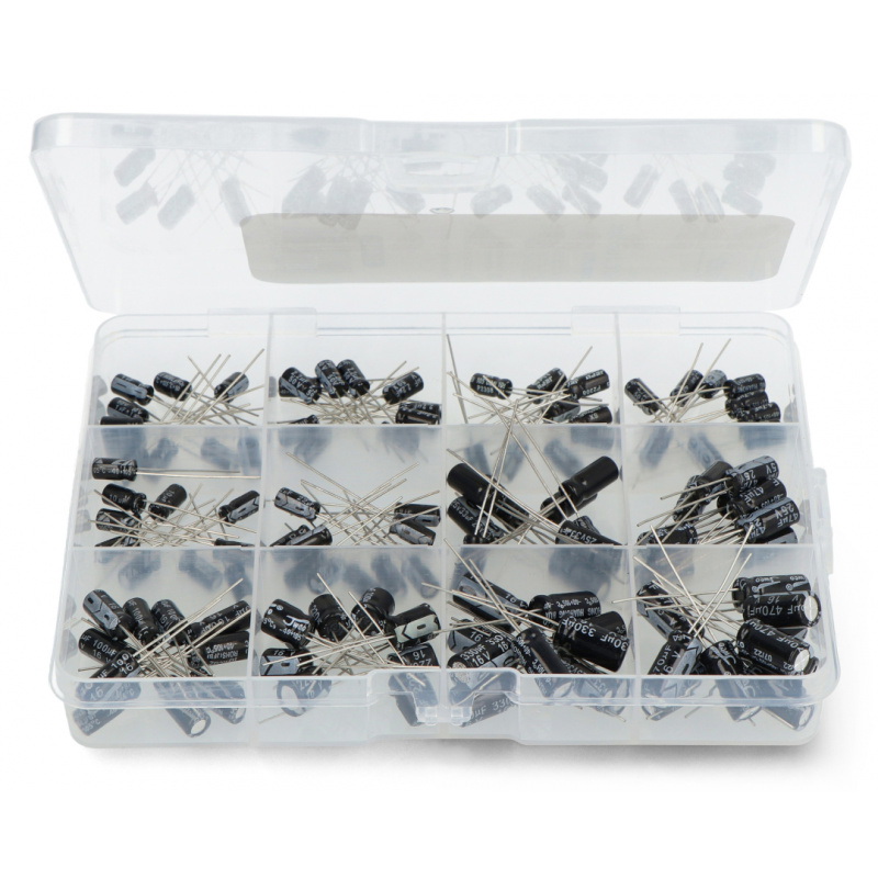 Zestaw 12 najpopularniejszych wartości kondensatorów elektrolitycznych od 1 uf do 470 uF na różne napięcia, przeznaczony do zastosowań serwisowych, edukacyjnych oraz projektowych. W zestawie znajduje się 120 sztuk kondensatorów, które idealnie sprawdzą się zarówno w warsztacie elektronika-hobbysty, jak i w profesjonalnym laboratorium naprawczym. Kondensatory są precyzyjnie dobrane pod względem parametrów, co pozwala na wykorzystanie ich w wielu typowych układach elektronicznych - od prostowników i zasilaczy, po moduły audio czy sterowniki mikroprocesorowe.