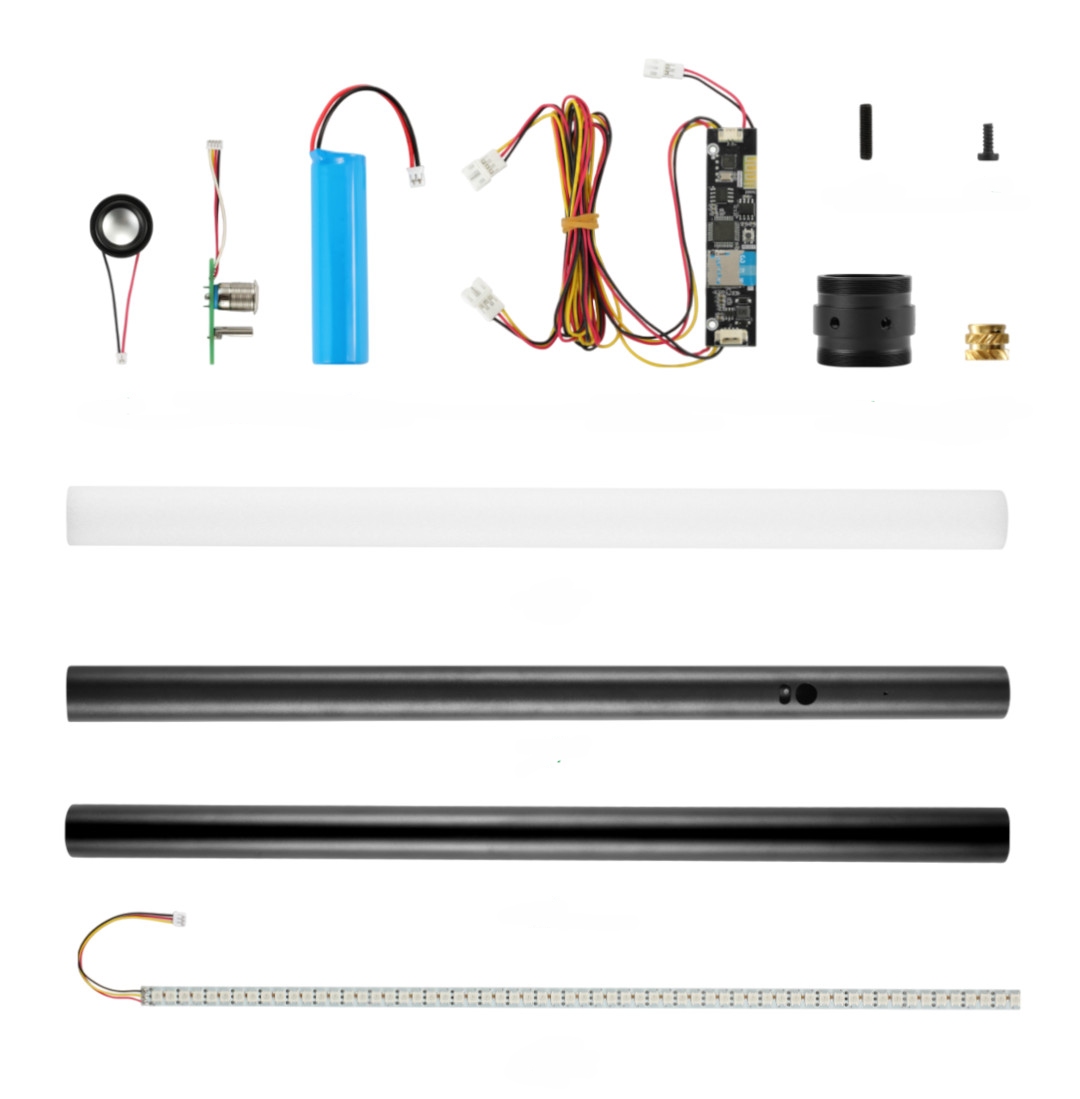 Zestaw został stworzony z myślą o hobbystach, cosplayerach i konstruktorach rekwizytów 3D. Dzięki wbudowanemu czujnikowi IMU, zestaw reaguje na ruchy użytkownika - takie jak wymach, uderzenie, pchnięcie - wyzwalając zsynchronizowane efekty dźwiękowe. Komponenty elektroniczne umożliwiają dynamiczne odtwarzanie dźwięków, które użytkownik musi dodać we własnym zakresie. Zestaw wyposażony jest w Bluetooth i aplikację mobilną, dzięki której można dostosować odtwarzane dźwięki. Całość działa na akumulatorze 18650 i może być ładowana przez USB typu C.