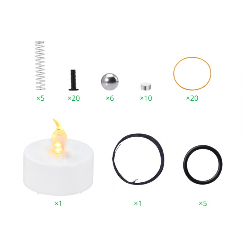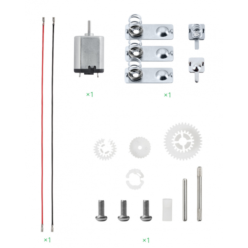 - Bogaty zestaw elementów - silnik, przekładnie, magnesy, sprężyny, światełka LED i więcej
