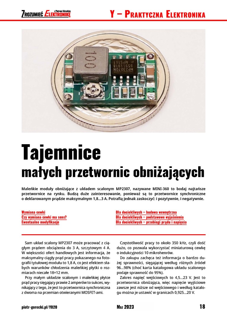 W tym numerze chciałbym zwrócić szczególną uwagę na niepozorny projekt okładkowy. Niepozorny, bo dotyczący małych przetwornic impulsowych. Małych, a wręcz maleńkich.