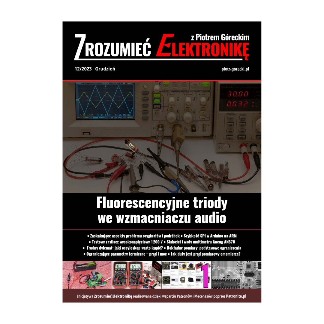 Tak jak zapowiadałem, ważne miejsce w czasopiśmie będzie zajmować tematyka audio. Interesującym przykładem jest projekt okładkowy tego numeru ZE. Wcześniej, w dwóch ostatnich numerach przekonywałem, że i Ty możesz zostać konstruktorem układów lampowych. Teraz zachęcam do działań praktycznych. Na pewno dla Twojego otoczenia, a pewnie także i dla Ciebie, ogromnym zaskoczeniem będzie działanie wzmacniacza audio na świecących triodach. I nie musisz wydawać majątku na lampy, nie musisz kupować kosztownych lamp Nutube 6P1, ponieważ istnieje szereg możliwości pozyskania potrzebnych wersji za darmo lub w niskich cenach. A moi Patroni mogą też liczyć na pomoc z mojej strony. Jeśli chcą „dotknąć się” do tego typu triod, mogą do mnie napisać i przedstawić swoje plany.