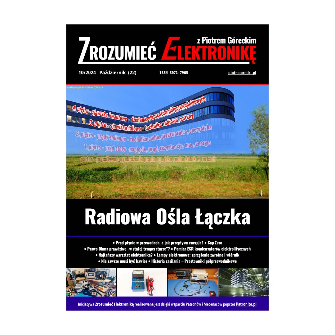 Zrozumieć Elektronikę to cyfrowy miesięcznik dla pasjonatów elektroniki, autorstwa Piotra Góreckiego. W numerze październikowym zaczyna się, zapowiadany od dawna, cykl Radiowej Oślej Łączki. Tematyka radiowa jest niezrozumiała dla większości elektroników ponieważ w ich umysłach głęboko zakorzeniły się różne fałszywe wyobrażenia, związane z prawem Ohma. Dlatego warto zwrócić uwagę na trzy artykuły związane z tym tematem. Między innymi o tym, czy energia przekazywana jest wewnątrz przewodów, czy może na zewnątrz. W numerze są też kolejne artykuły dotyczące wyposażenia warsztatu elektronika. Jeden dotyczący wyposażenia najtańszego, drugi - dużo droższego, ale zdecydowanie lepszego. W cyklu Wspólnie projektujemy warto polecić bardzo ważny materiał o projektowaniu obwodów wejściowych częstościomierza. W numerze znajdują się też artykuły o pomiarze rezystancji ESR kondensatorów i dwa różne artykuły o prostownikach. A w cyklu o lampach elektronowych - bardzo ważny materiał o sprzężeniu zwrotnym i o wtórniku. Numer ISSN czasopisma: 3071-7965.