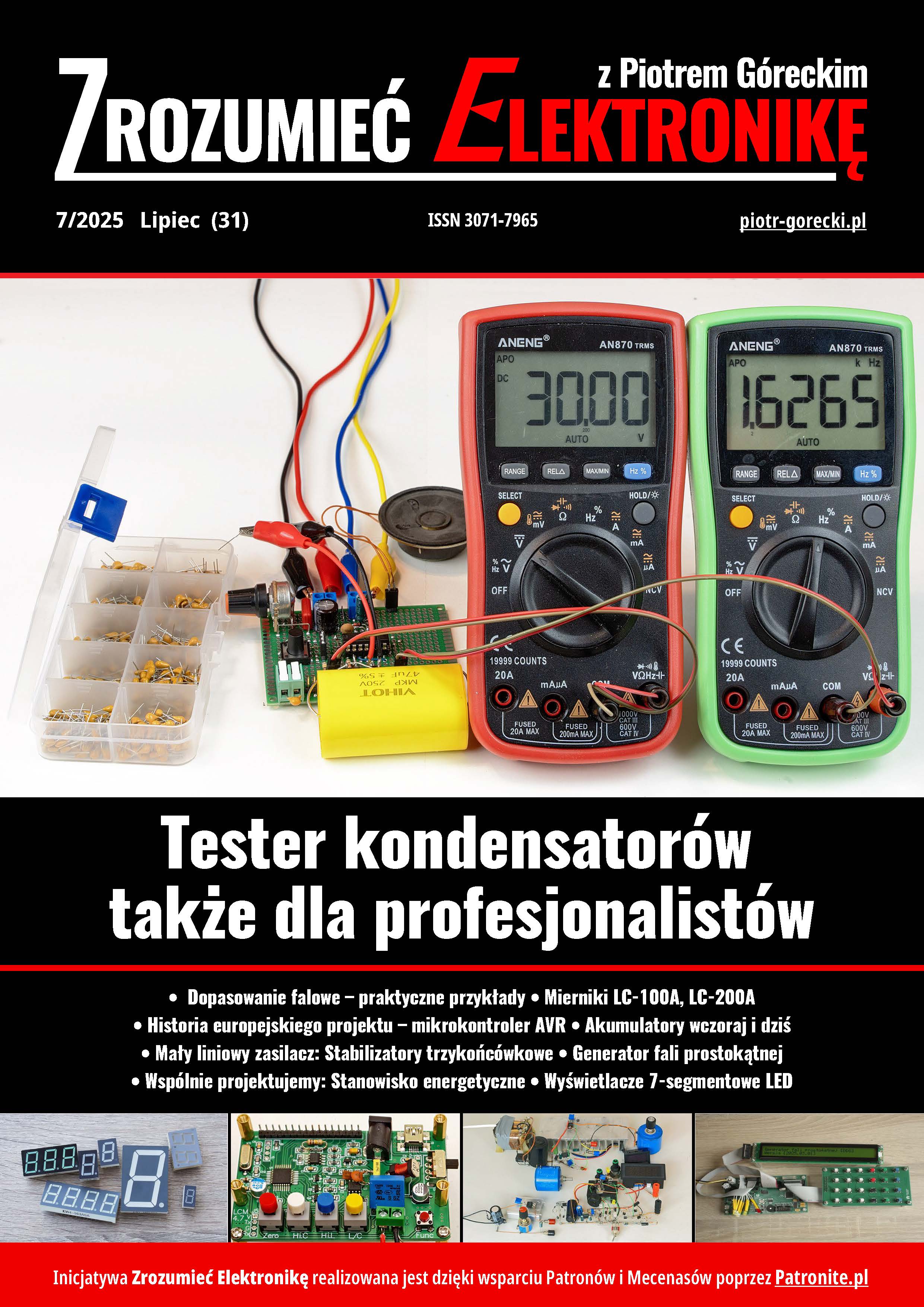 Zrozumieć Elektronikę to cyfrowy miesięcznik dla pasjonatów elektroniki, autorstwa Piotra Góreckiego. Projektem okładkowym wakacyjnego numeru ZE jest zaskakujący tester kondensatorów, który pokazuje, że wielu kondensatorów i prawie wszystkich cewek nie można zmierzyć „dokładnie”. W numerze jest też artykuł przedstawiający historię, wady, zalety oraz wskazówki dotyczące modyfikacji dość popularnych mierników: LC-100 i LC-200. W cyklu Radiowej Oślej Łączki artykuł „Dopasowanie falowe – praktyczne przykłady” objaśnia ważne kwestie dotyczące dopasowania falowego. W cyklu o „małych” zasilaczach omówiony jest popularny scalony stabilizator LM317. Na uwagę zasługuje też kolejny artykuł Mikroprocesorowej Oślej Łączki oraz dwa inne artykuły Andrzeja Pawluczuka, wprowadzające w świat „cyfrówki” i mikrokontrolerów, a także artykuł na temat najpopularniejszych dziś akumulatorów litowych. Numer ISSN czasopisma: 3071-7965.