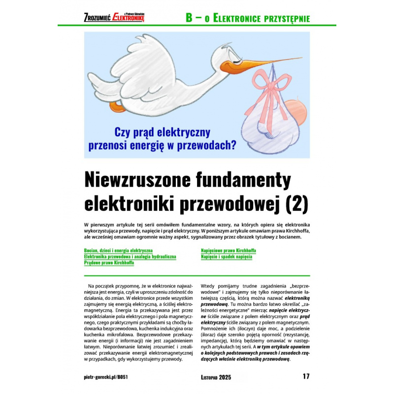 Przede wszystkim należałoby się wytłumaczyć z zaskakującej fotografii tytułowej! Otóż w poprzednim numerze ZE rozpocząłem dwa ważne cykle. Jeden dotyczący smartfona i telekomunikacji czyli komunikacji na odległość. A drugi dotyczący fundamentów elektroniki, a konkretnie jej łatwiejszej części - elektroniki przewodowej. Po latach przygotowań w końcu pomału i stopniowo zaczynam realizować hasło „zrozumieć elektronikę”, zaczynając od wiedzy elementarnej. I właśnie artykuł okładkowy to już drugi odcinek przedstawiający elementarne, ale i fundamentalne zagadnienia. Zwróć uwagę, że omawianie podstaw zaczynam inaczej, niż to jest zrobione w większości podręczników i książek dla początkujących. Nieprzypadkowo, ale żeby to harmonizowało z innymi wątkami, przeznaczonymi i dla zupełnie początkujących, i dla tych, którzy chcą uporządkować posiadaną wiedzę.