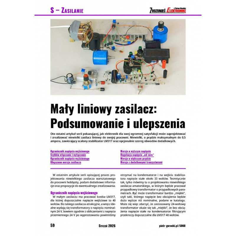 Ale będą też liczne materiały dla bardziej zaawansowanych. Kończymy cykl o „małym” zasilaczu z LM317, ale tematu zasilaczy nie porzucimy.